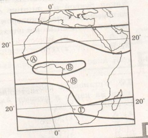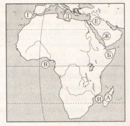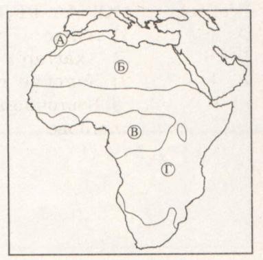 11. Какой буквой обозначена на карте Африки природная зона пустынь и полупустынь