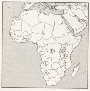 13. Какой буквой на карте Африки обозначено государство Ангола?