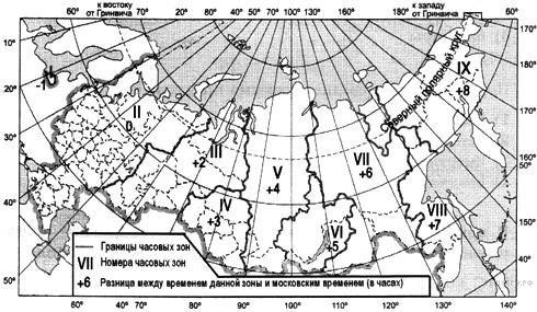 25. С помощью карты «Часовые зоны России» определите, сколько вре- мени будет в Красноярске (V часовая зона), когда в Якутске (VII часовая зона) 14 часов.