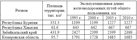 3) С 1995 по 2010 г. эксплуатационная длина железнодорожных путей общего пользования Республики Бурятия неуклонно сокращалась.