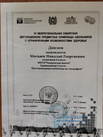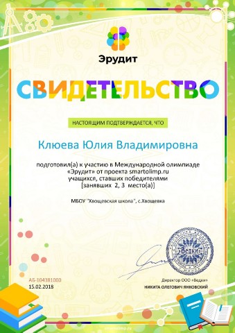 Международная дистанционная олимпиада "Эрудит" - 2,3 место