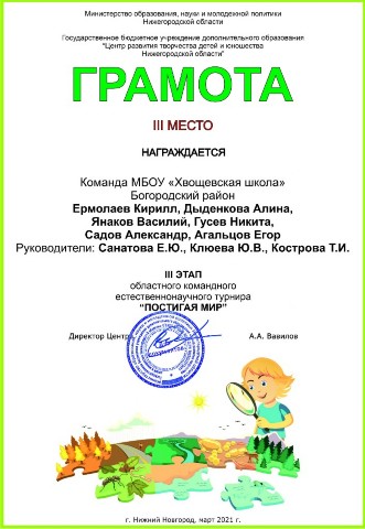 Муниципальный этап областного командного Естественнонаучного турнира «Постигая мир»- победитель